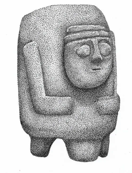 Piedra con petroglifos circulares. Grabados en piedra mediante la técnica de percusión directa y abrasión. La piedra mide aproximadamente 80cm de altura por 120cm de largo. Fue descubierta en el sitio de La Vena (Mountjoy 2003: PV-36). Presenta decenas de motivos circulares tipo “pocitos” y puntos, los cuales se combinan con círculos y líneas para formar un diseño geométrico abstracto.