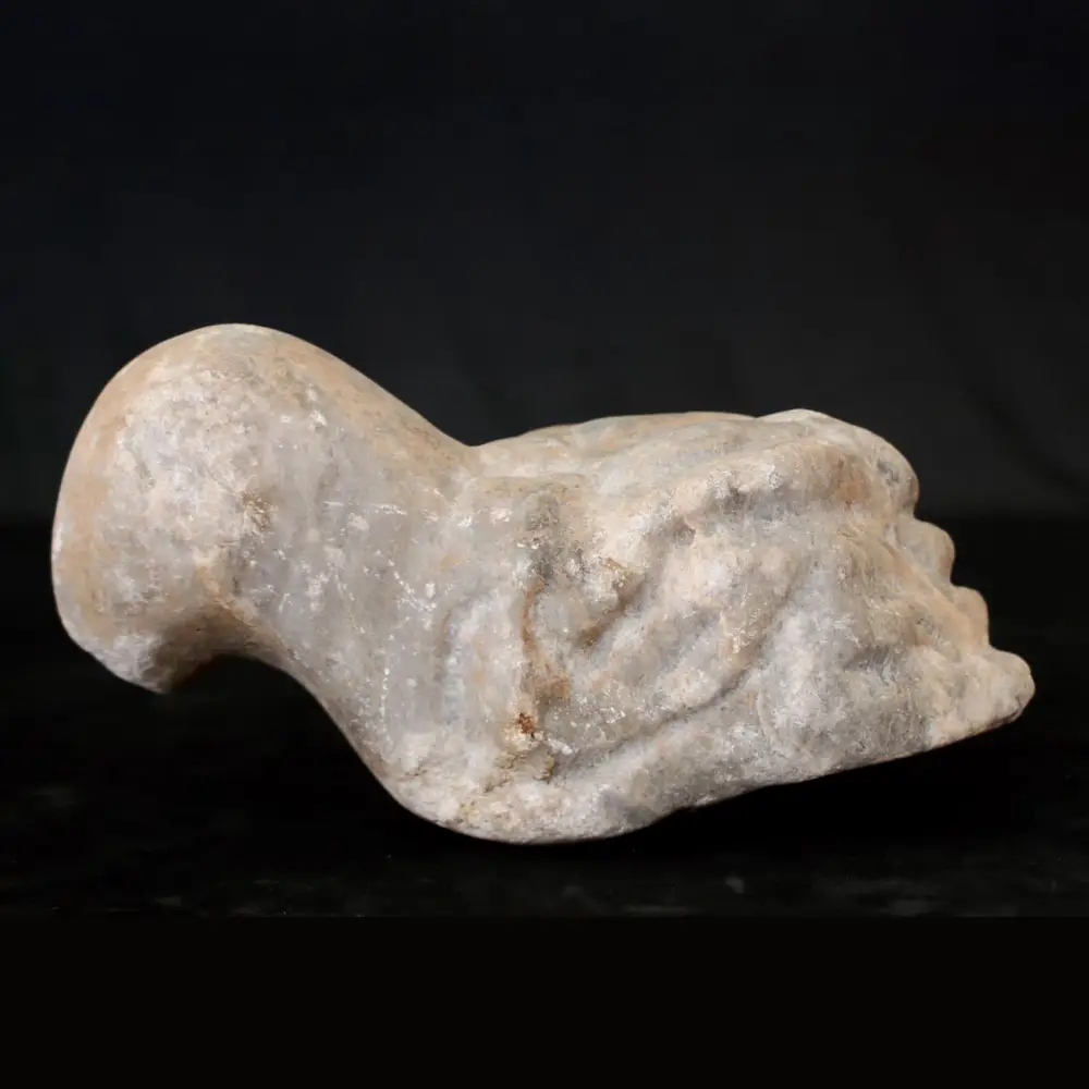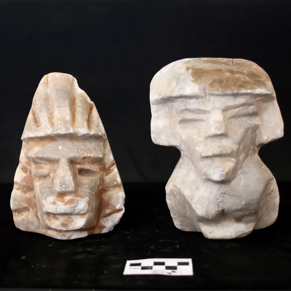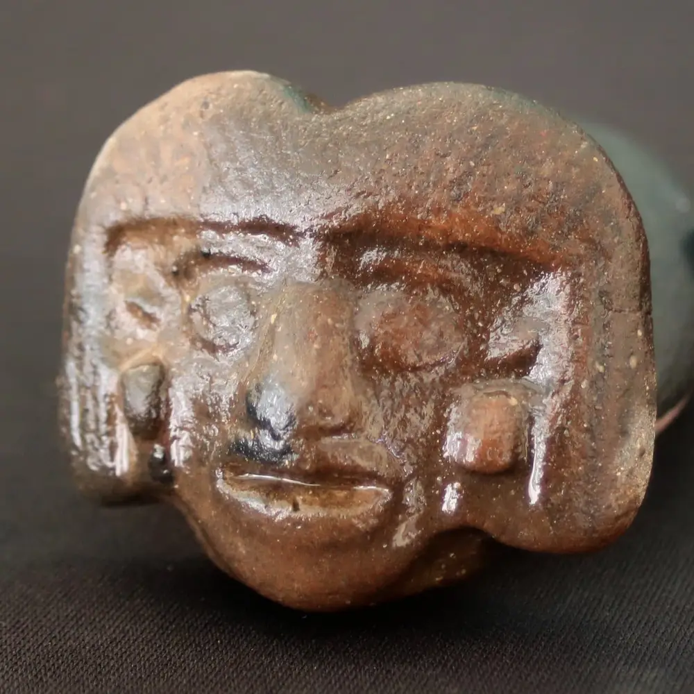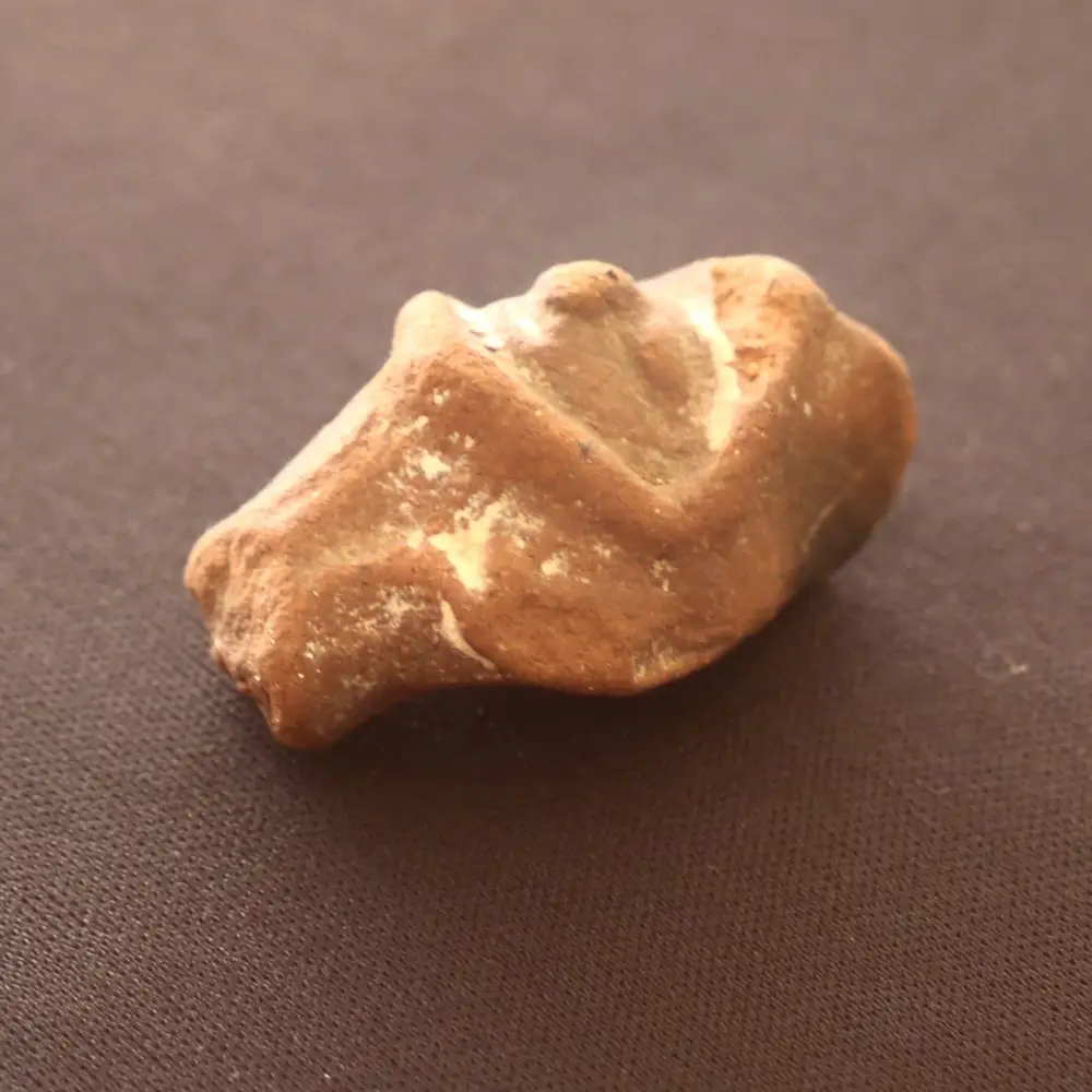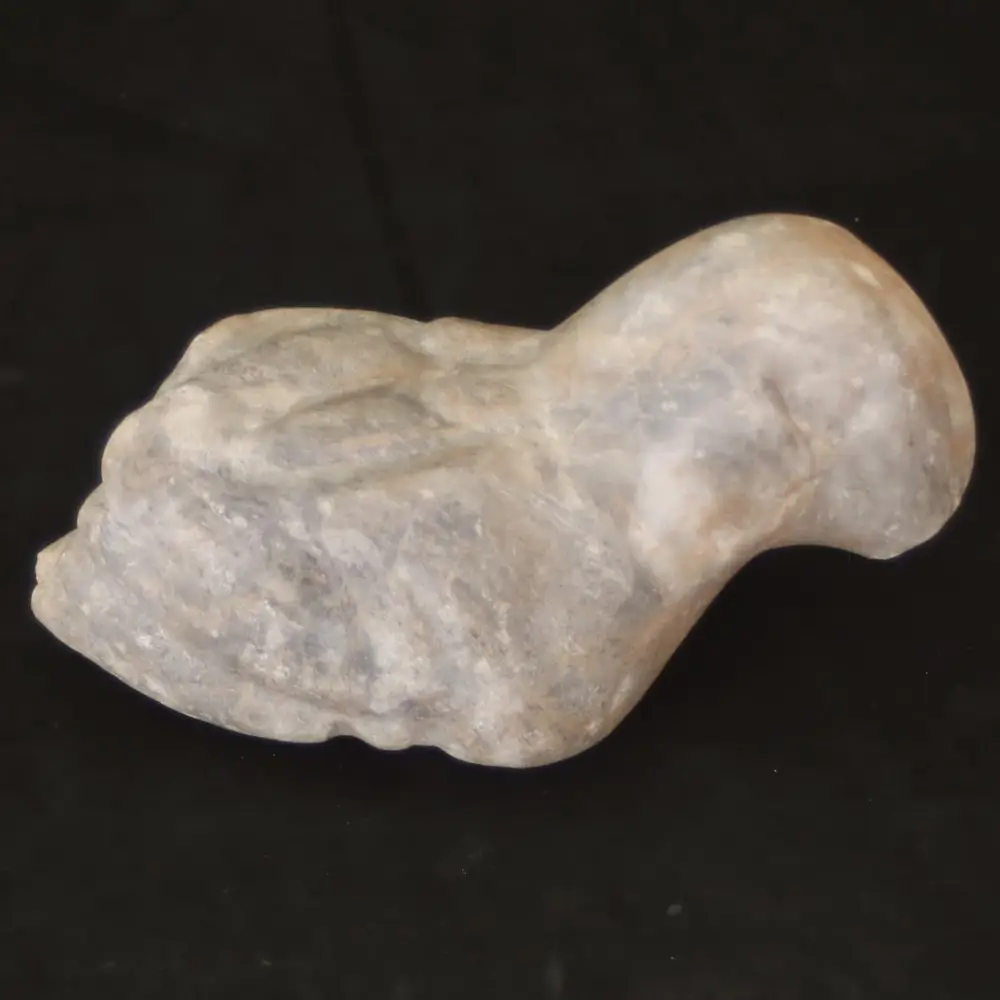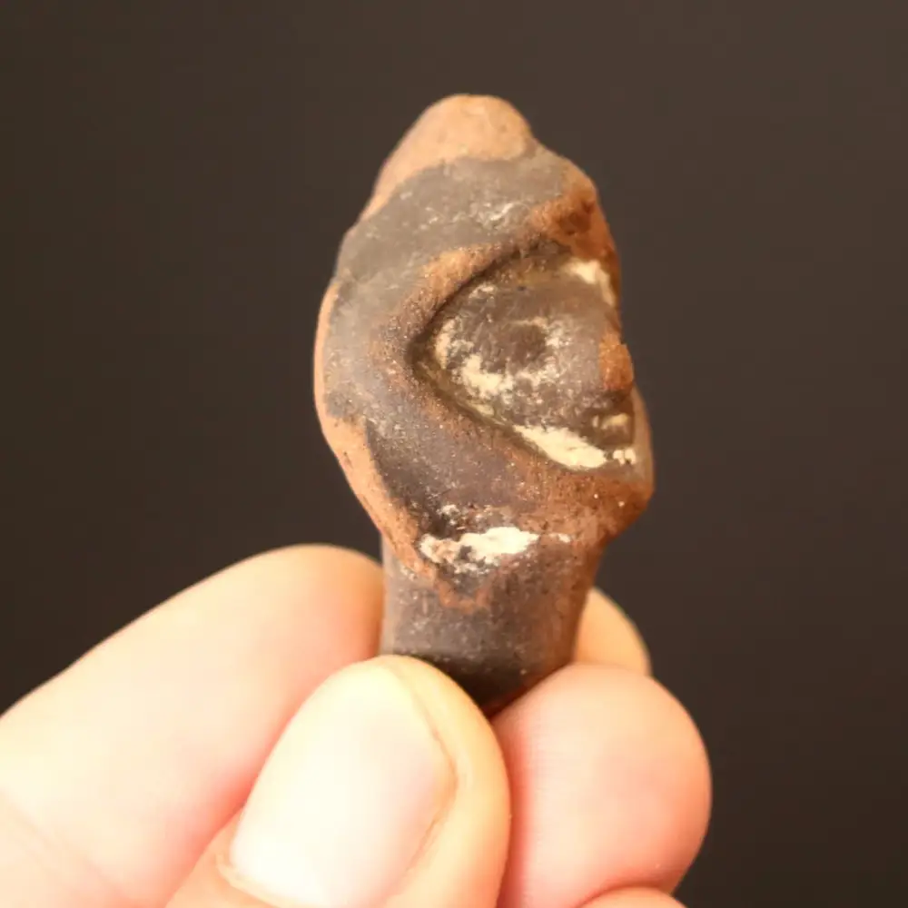 Cabeza de figurilla antropomorfa. Cerámica hecha con la técnica del barro modelado. Medidas aproximadas de 4 x 6cm. Fue encontrada en las excavaciones arqueológicas del Montículo 1 en la Zona de Monumentos de Ixtapa (Mountjoy 2003: PV-1). Está asociada a la fase Ixtapa Temprano (600 – 300a.C.). Se caracteriza por presentar la cabeza deformada tipo tabular erecta, con el rostro sumido y con las cejas unidas con la nariz que le da su peculiar expresión. Este fragmento de figurilla es una de las primeras representaciones de la figura humana encontradas arqueológicamente en la zona costera.