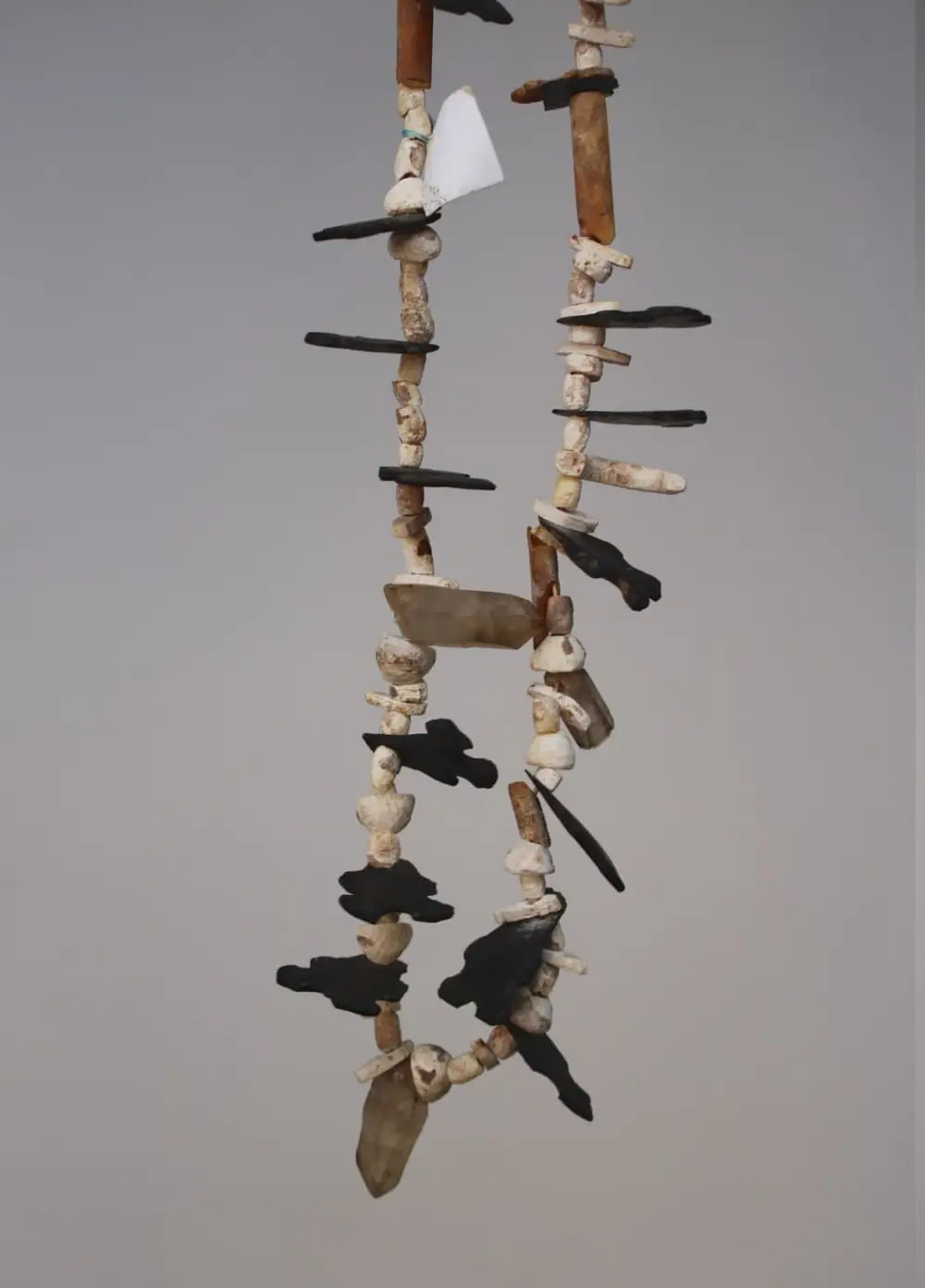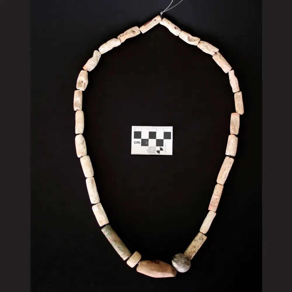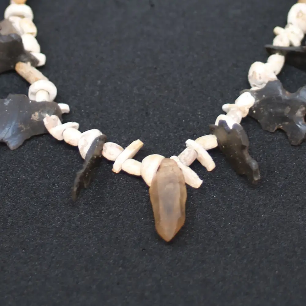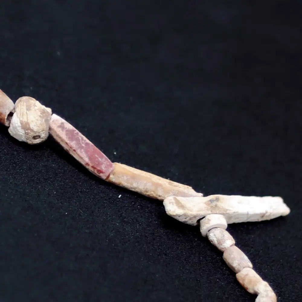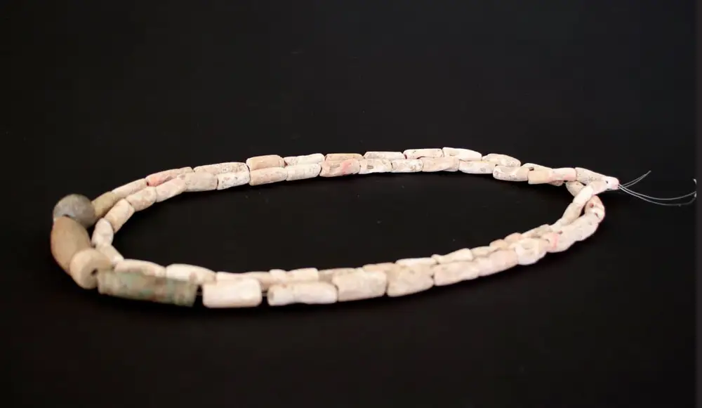 Pendientes de concha. Moluscos de la familia Conidae trabajados con la técnica de corte y abrasión. Tienen unas medidas entre los 5 y 7 cm de largo. Proviene de la colección Escuela Teresa Barba (REG-1671 PJ 159). Asociados a las fases Aztatlán-Banderas (900 – 1600d.C.). Los conos (caracoles) presentan un corte con el cual se le retiró todo la espira, además tiene en el otro extremo un corte en forma de acanaladura para poder engarzarse.