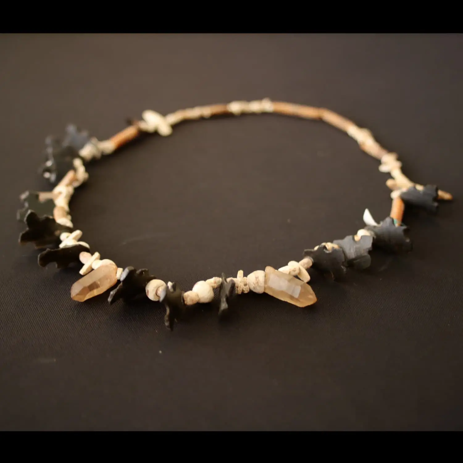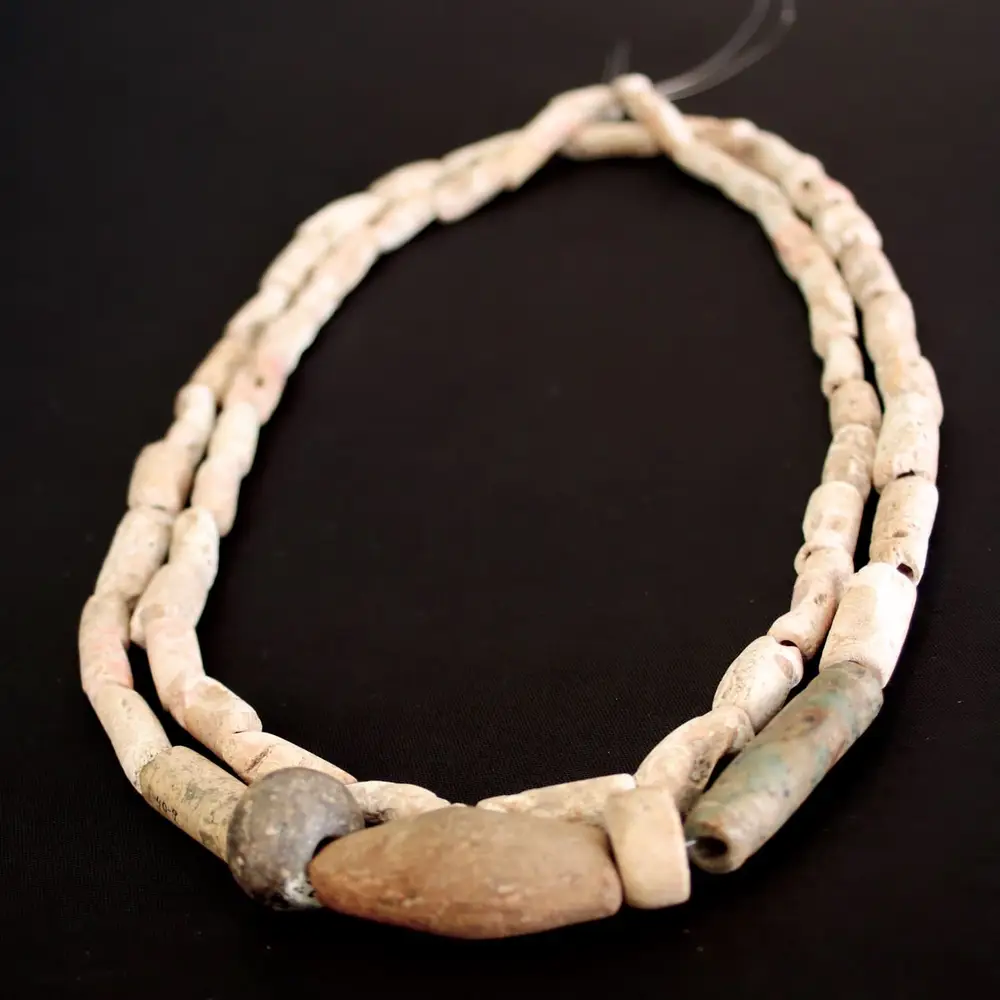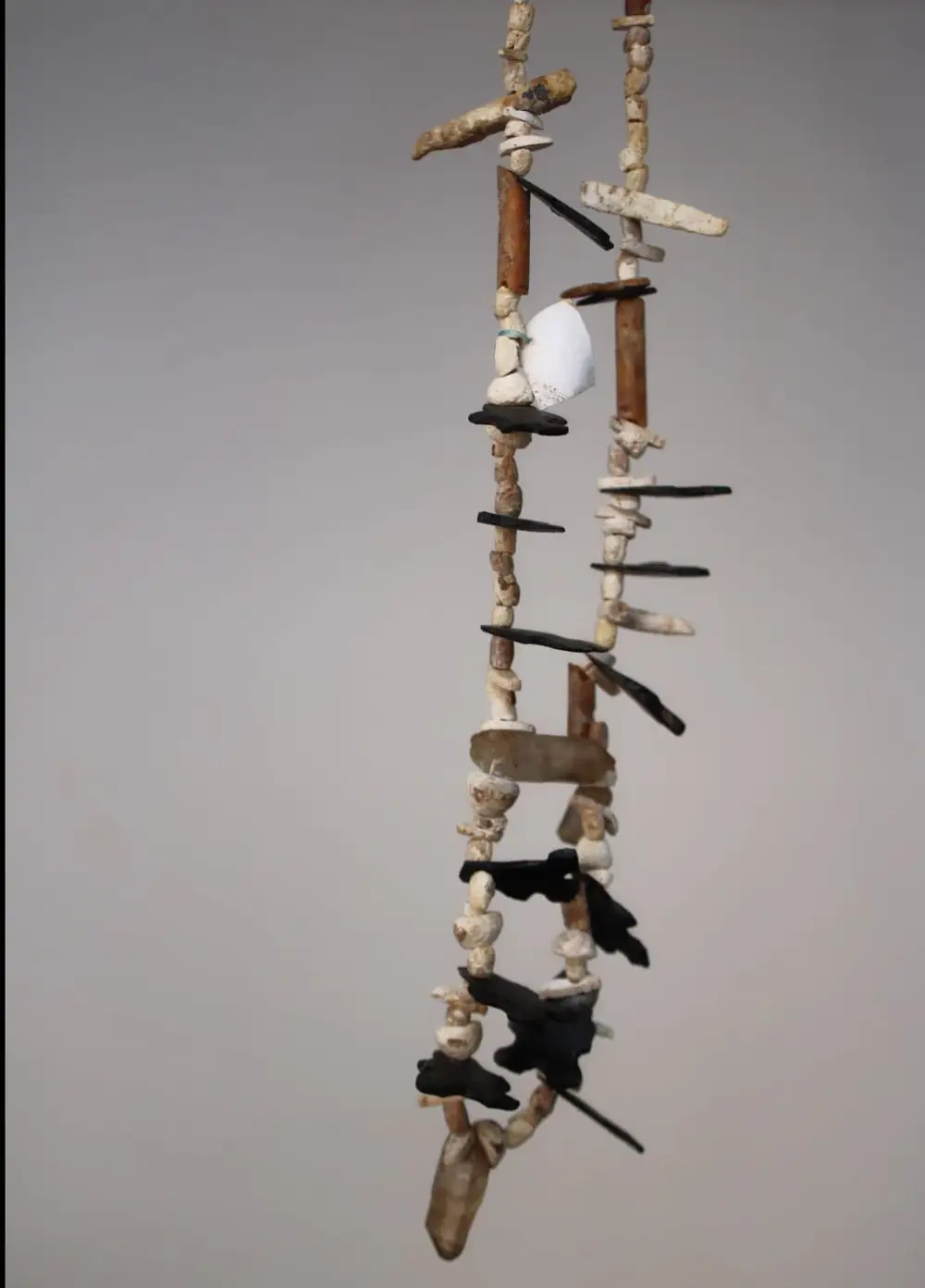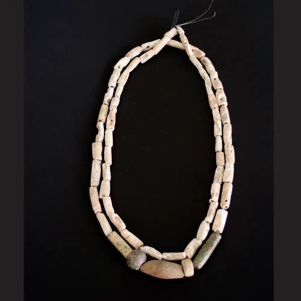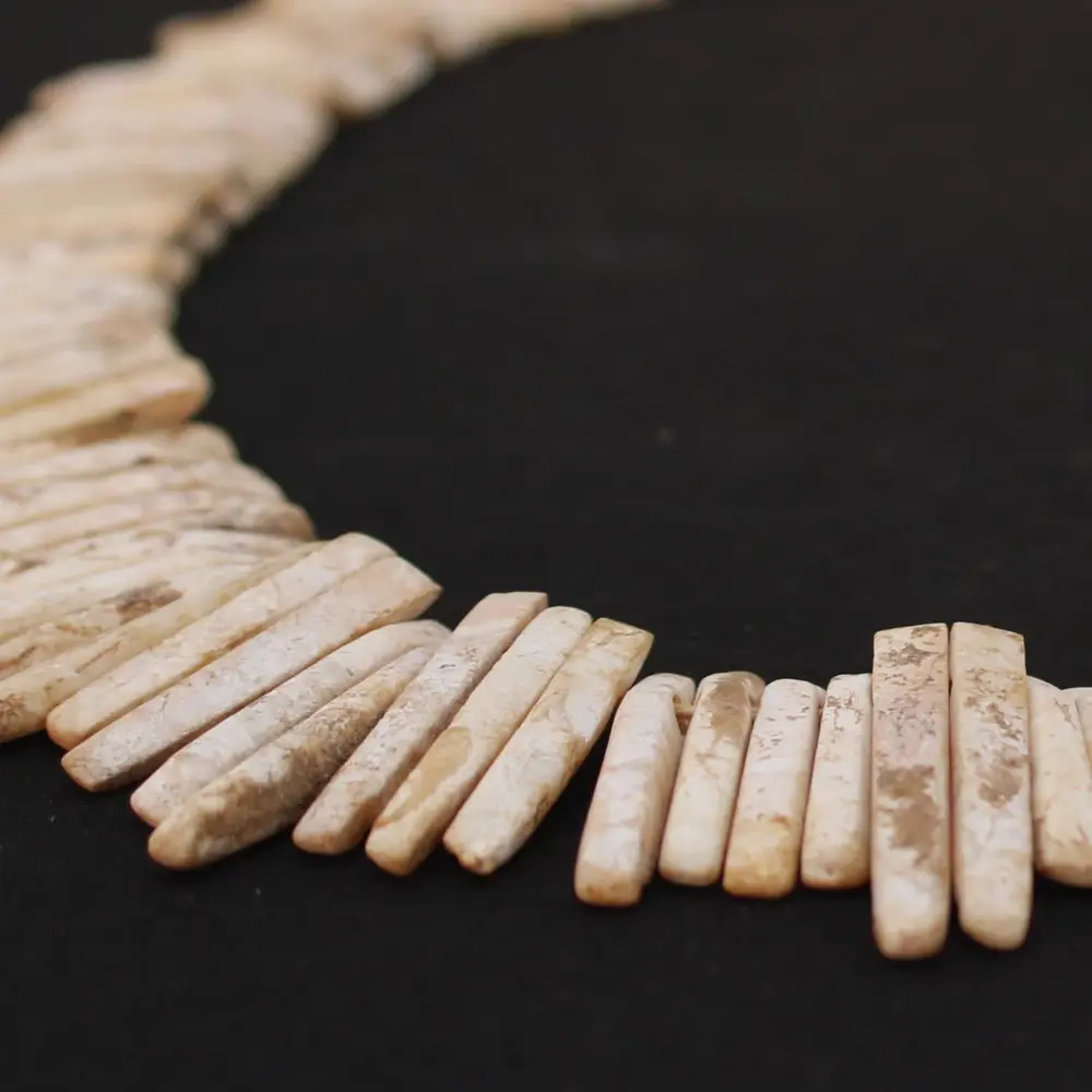 Pendientes de concha. Moluscos de la familia Conidae trabajados con la técnica de corte y abrasión. Tienen unas medidas entre los 5 y 7 cm de largo. Proviene de la colección Escuela Teresa Barba (REG-1671 PJ 159). Asociados a las fases Aztatlán-Banderas (900 – 1600d.C.). Los conos (caracoles) presentan un corte con el cual se le retiró todo la espira, además tiene en el otro extremo un corte en forma de acanaladura para poder engarzarse.