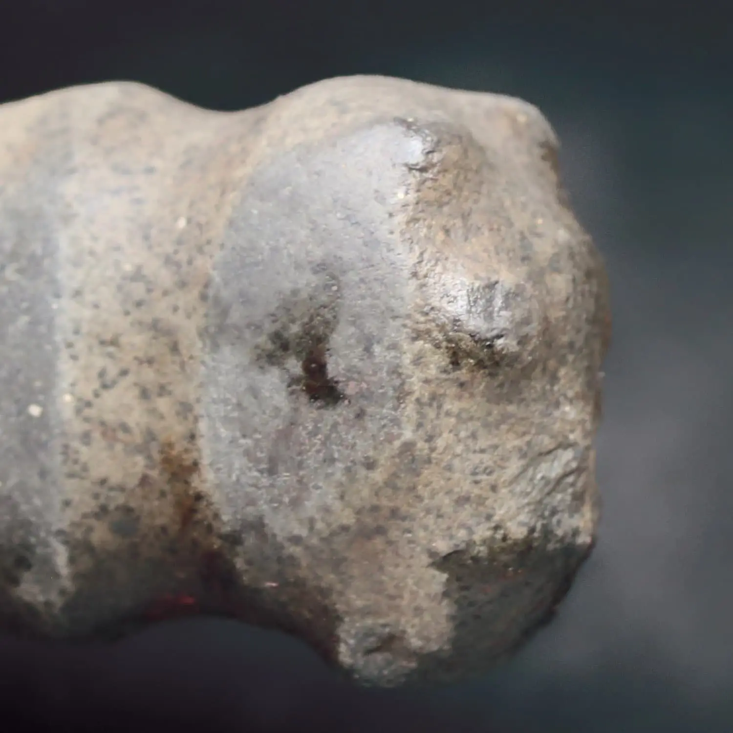 Estela con venado. Vista posterior. Grabado en forma de venado o perro el cual está orientado mirando hacia la base de la estela. Las estelas tienen un uso o función ritual asociada al culto a los ancestros y como marcadores direccionales asociados al movimiento del sol.